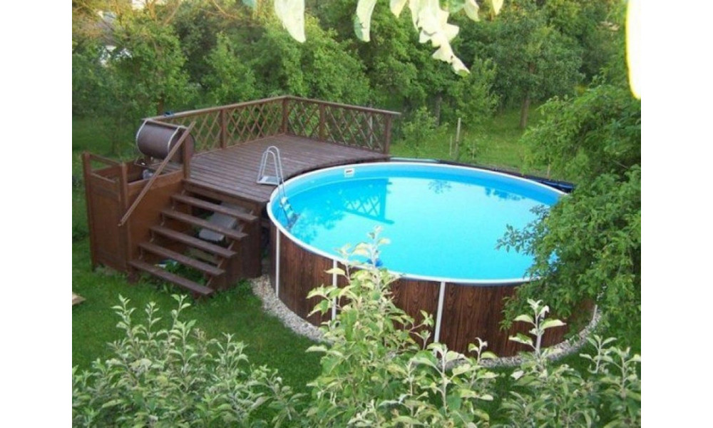 Усиленная конструкция каркаса, позволяет не производить демонтаж бассейна на зимний период времени. Каркас изготовлен из высокопрочной стали, покрытый шестислойным защитным слоем, предотвращающим появление коррозии. Наружный окрас стенки бассейна под дерево, пленка мраморного цвета (голубой фон с мраморными отливами), создает привлекательный внешний вид. Важно знать: надувные бассейны, получившие широкое распространение, не способны обеспечить такую же прочность и надежность, как каркасные бассейны!