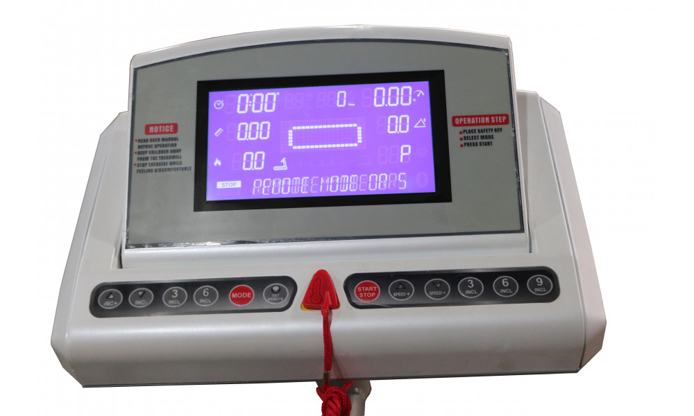 Дорожка оснащена кнопкой экстренной остановки. При необходимости срочно остановить тренировку, нажмите ее, и тренажер плавно остановится.