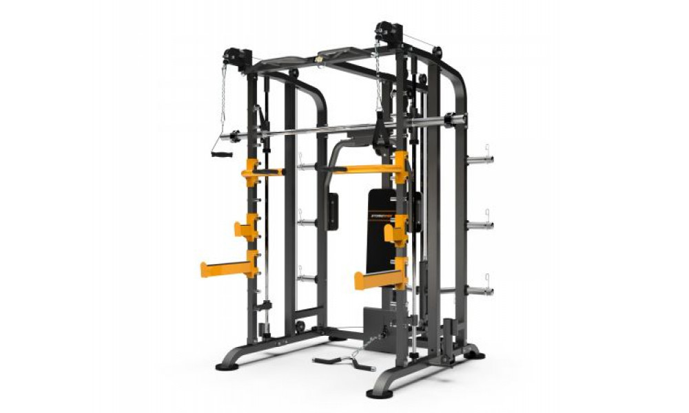 Мультистанция, Машина Смита STONERISE D873. Многочисленные функции тренажёра поспособствуют совокупному развитию мышц всего организма.