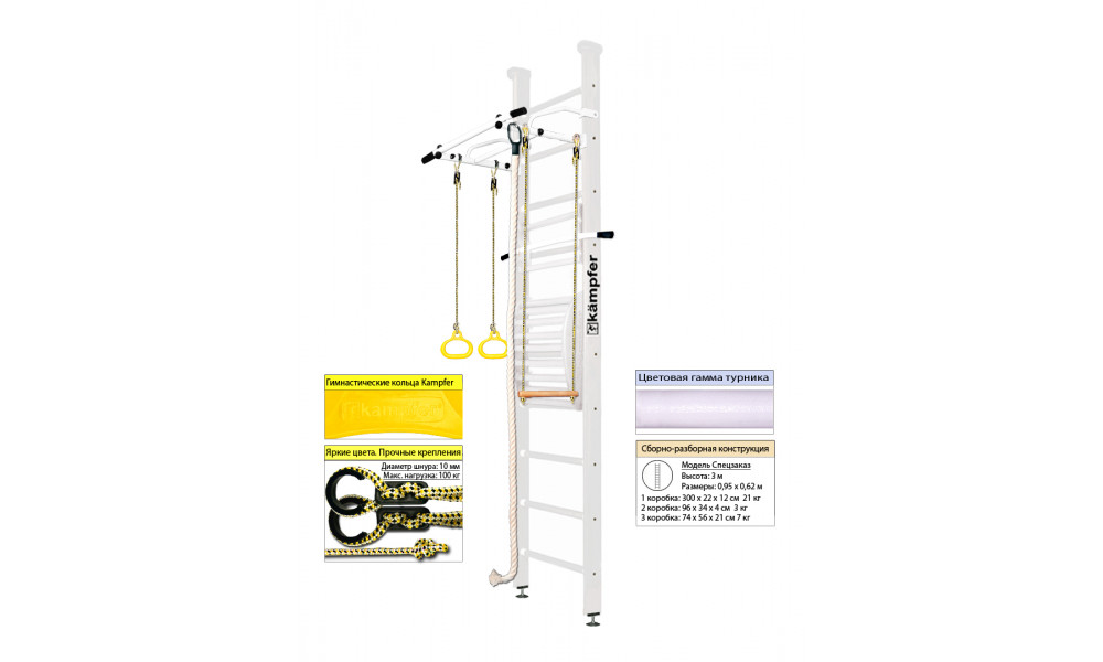 Шведская стенка Kampfer Helena Maxi Ceiling (№6 Жемчужный Высота 3 м белый турник)